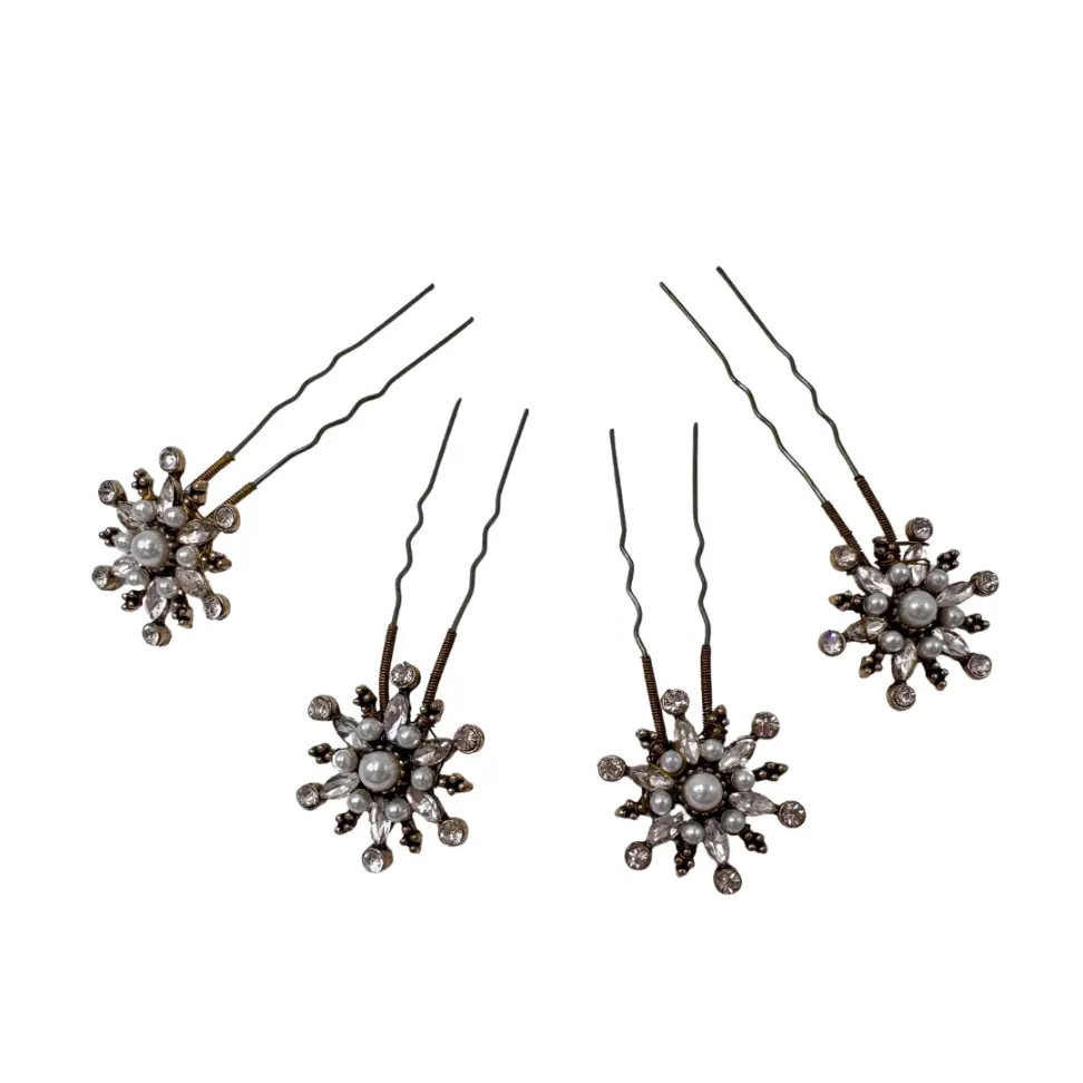 La Horquilla Novia Fabiola puede lucirse de forma individual o en composiciones múltiples. Se recomienda especialmente su uso en combinación de 3 unidades en adelante para crear peinados más completos, armónicos y espectaculares.