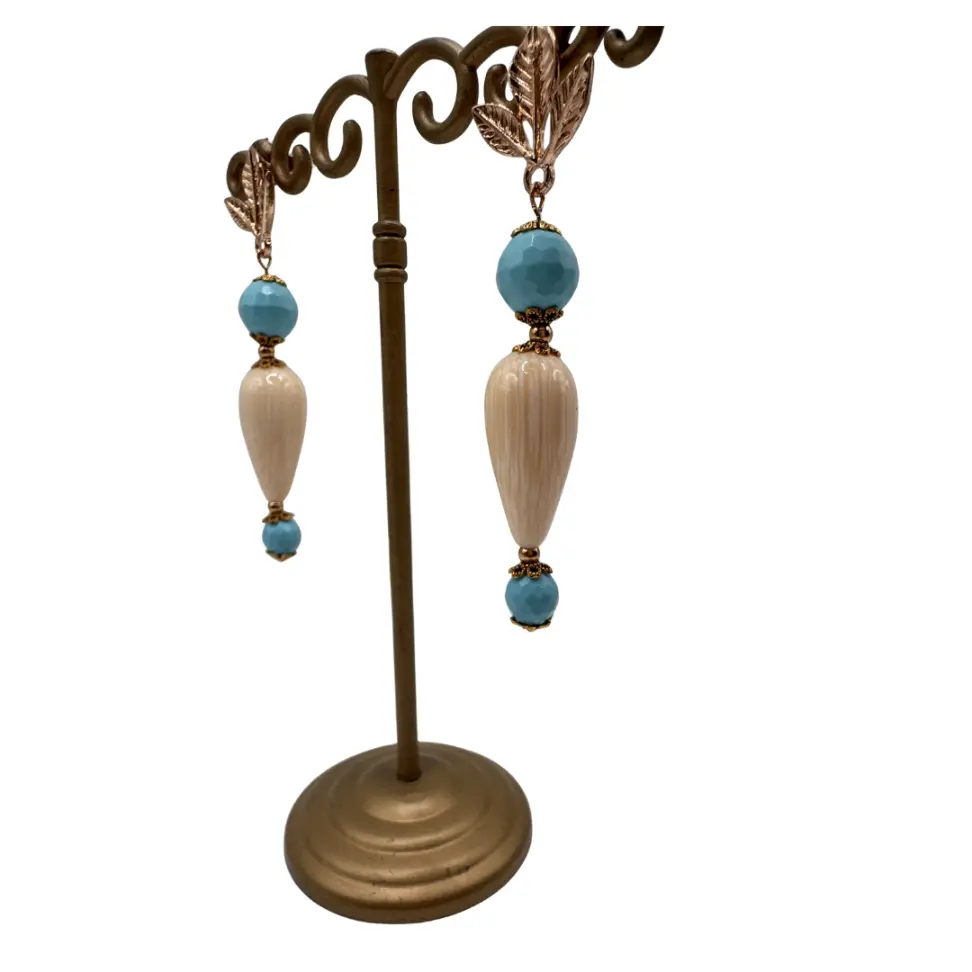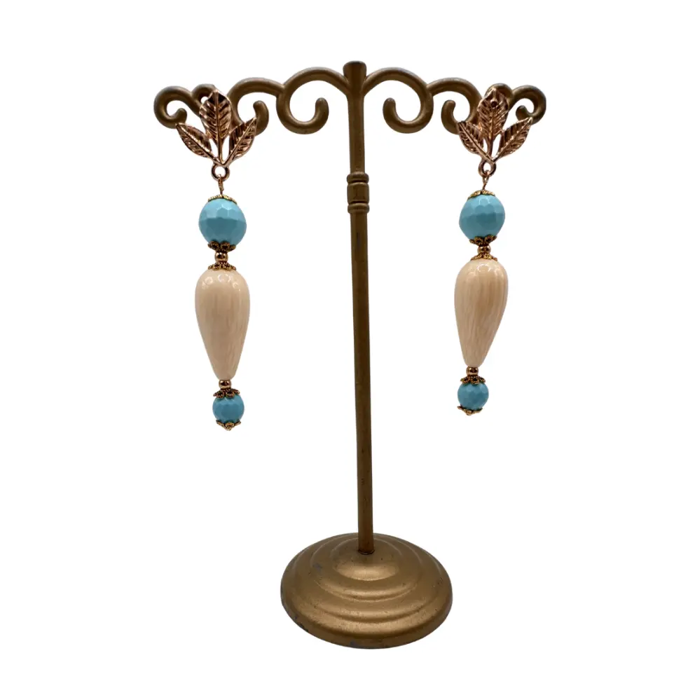 Ideales para looks flamencos, estilismos de invitada, bodas o celebraciones especiales, los Pendiente Lágrima Lanza Beige / Celeste aportan elegancia y un aire refinado.
