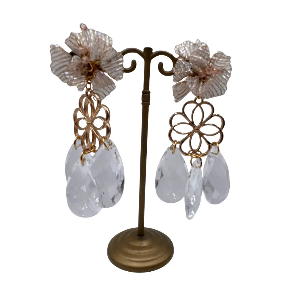 Inspirados en las majestuosas lámparas de cristal de los palacios del siglo XVIII, los Pendientes Grand Lágrimas Cristal Triple Colección Jote Martínez 2026 combinan diseño clásico y estética contemporánea. Su estructura incorpora una aplicación de pedrería cosida a mano que aporta brillo y distinción, junto con bolas en resina transparente que generan un efecto luminoso y delicado.