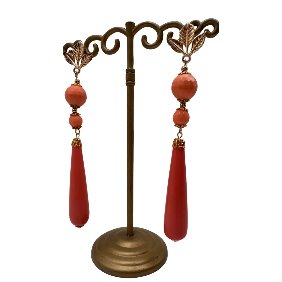 Perfectos para lucir con traje de flamenca, looks de invitada, bodas o celebraciones especiales, los Pendientes Lágrimas Vintage Salmón Facetado aportan un aire elegante y atemporal.