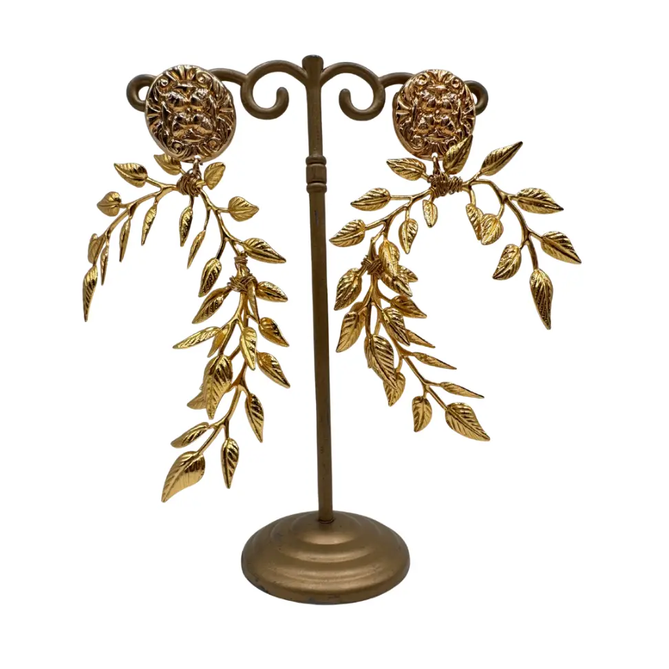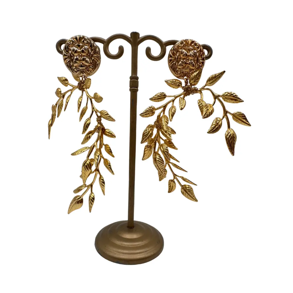 Fabricados con hojas en latón con baño en oro, los Pendientes Media Herradura Hojas Colección Jote Martínez 2026 ofrecen brillo, resistencia y calidad. Incorporan cierre de clip con tornillo en latón con baño de oro, proporcionando una sujeción cómoda y segura durante horas.