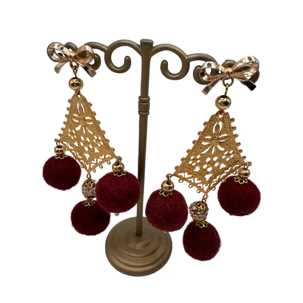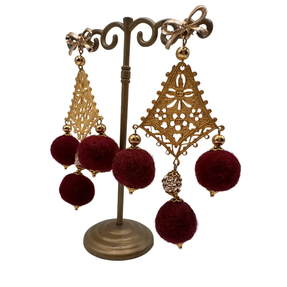 Estos Pendientes Promesa Colección Rocío Bellido 2026 están elaborados con una base de filigrana en latón español con baño en oro, ofreciendo un acabado luminoso y refinado. Su diseño incorpora bolas en color coral de gran calidad, con un dibujo estriado que imita el hueso natural, aportando carácter y belleza artesanal.