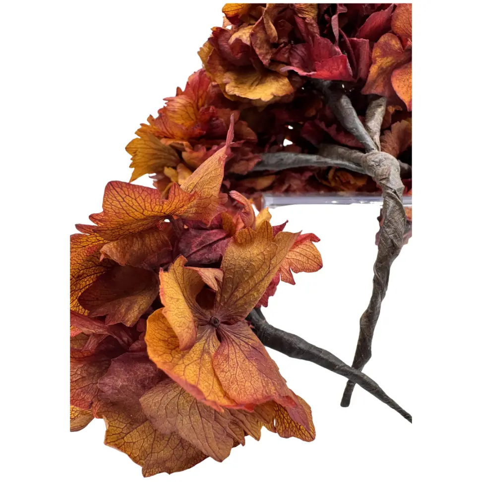 Con unas medidas aproximadas de 19 cm de ancho y 13 cm de alto, el Ramillete Hortensias Preservadas Burdeos + Flor Suelta Colección Rocío Bellido 2026 ofrece presencia visual sin perder delicadeza.